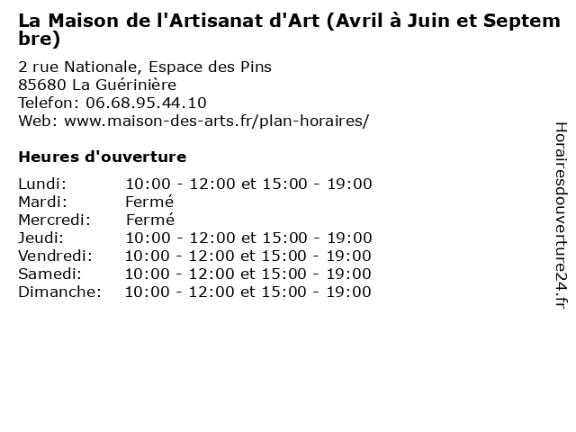 Termes de recherche pour La Maison de l'Artisanat d'Art (Avril à Juin et Septembre):la, et, de, horaires, musée, maison, mai, septembre, avril, juin, d'art, peinture, exposition, l'artisanat, galerie d'art |