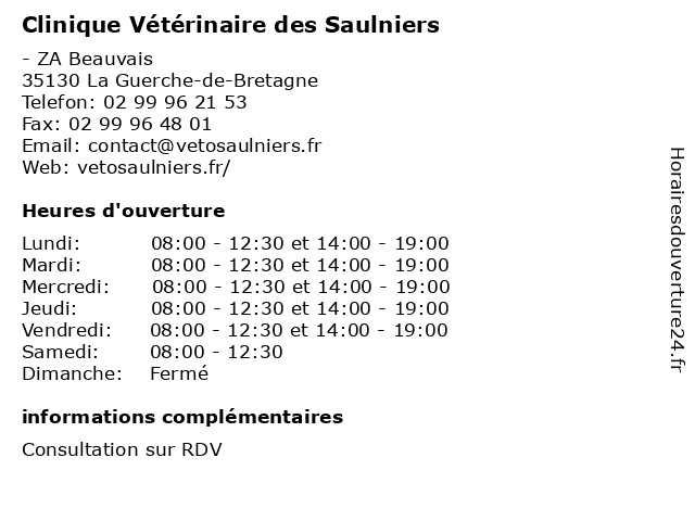 | Mercredi | 08:00-12:30 et 14:00-19:00 |