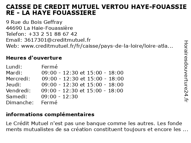 Termes de recherche pour CAISSE DE CREDIT MUTUEL VERTOU HAYE-FOUASSIERE - LA HAYE FOUASSIERE:la, de, crédit, mutuel, caisse, haye, fouassière, vertou |