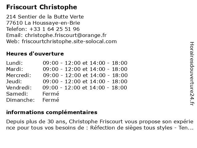 | Vendredi | 09:00-12:00 et 14:00-18:00 |