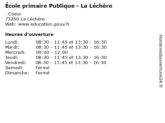 | Mardi | 08:30-11:45 et 13:30-16:30 |