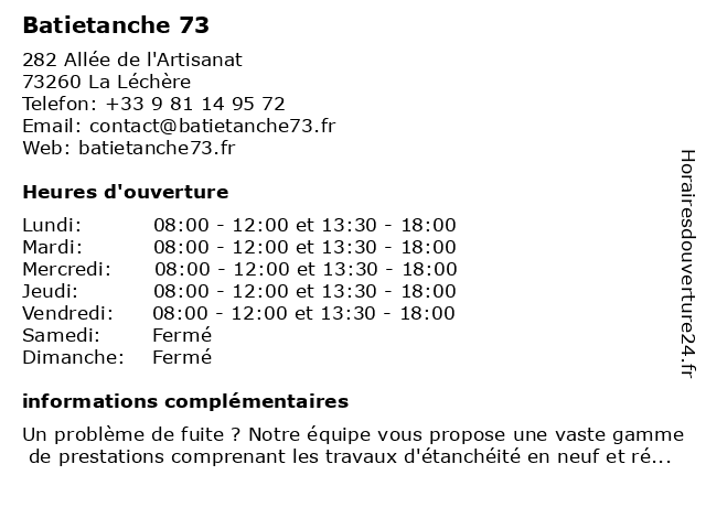 | Lundi | 08:00-12:00 et 13:30-18:00 |
