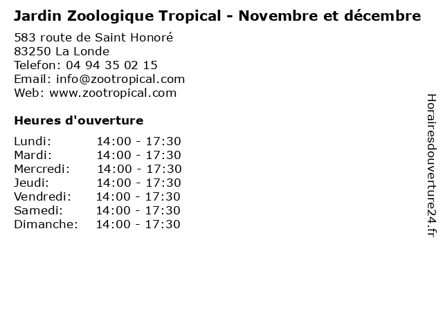 Termes de recherche pour Jardin Zoologique Tropical - Novembre et décembre:et, jardin, jeux, parc, tropical, découverte, décembre, novembre, animaux, zoologique, sortie, visite |