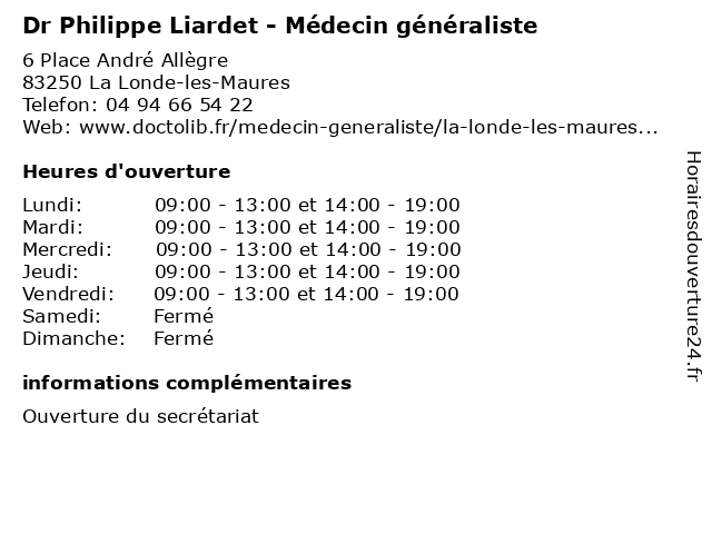 | Lundi | 09:00-13:00 et 14:00-19:00 |