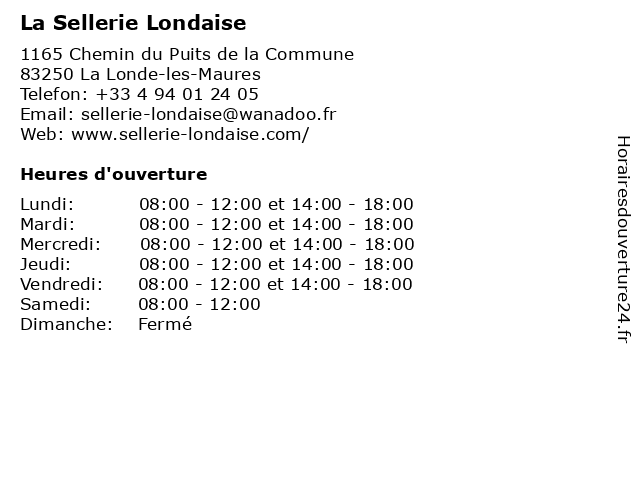 | Lundi | 08:00-12:00 et 14:00-18:00 |