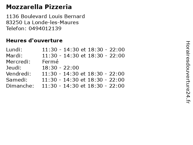 | Mardi | 11:30-14:30 et 18:30-22:00 |