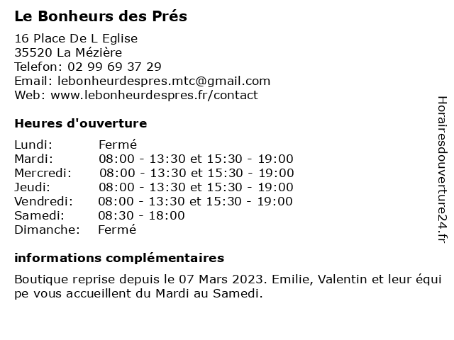 | Mardi | 08:00-13:30 et 15:30-19:00 |
