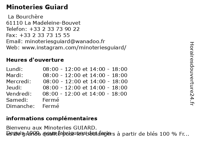 1 Minoteries Guiard (Distance: 52,32 km) Impasse Lionel Maugars, 28130 Saint-Piat guiard, minoteries