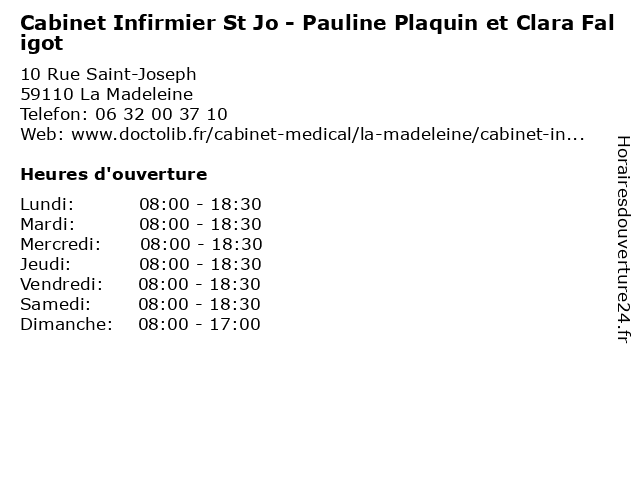 Termes de recherche pour Cabinet Infirmier St Jo - Pauline Plaquin et Clara Faligot:et, de, st, cabinet, jo, medical, clara, pauline, médecins, docteurs, infirmier, plaquin, faligot |