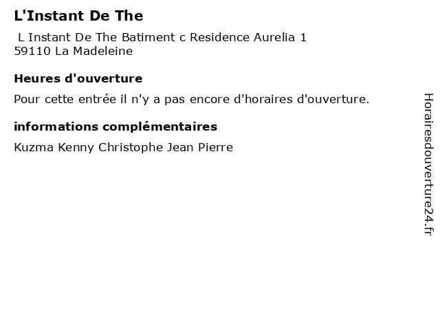 Termes de recherche pour L'Instant De The:pierre, jean, the, restaurants, instant, christophe, kenny, kuzma |