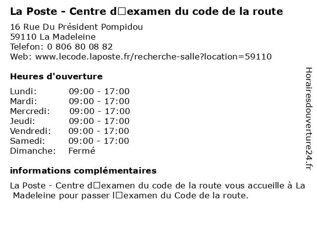 Termes de recherche pour La Poste - Centre d’examen du code de la route:poste, la, du, de, route, centre, code, d’examen, centre d'évaluation scolaire, école technique |