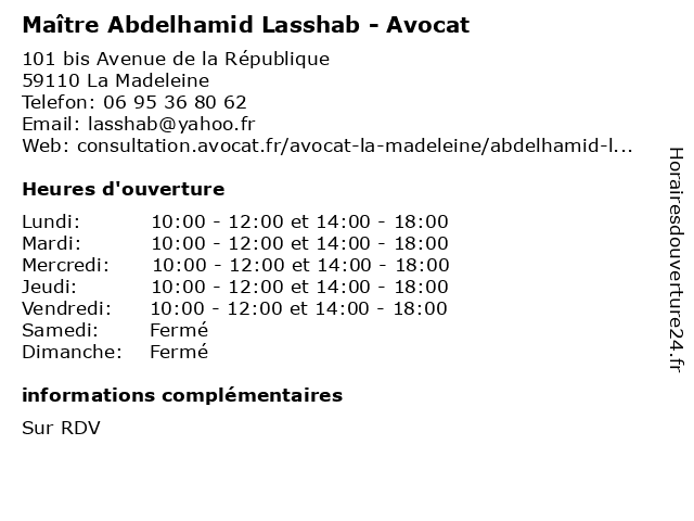 | Lundi | 10:00-12:00 et 14:00-18:00 |