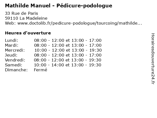 | Mercredi | 10:00-12:00 et 13:00-19:30 |