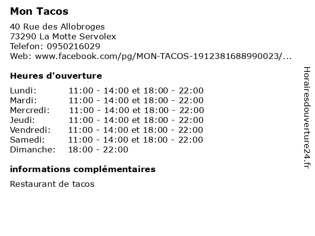 | Mardi | 11:00-14:00 et 18:00-22:00 |