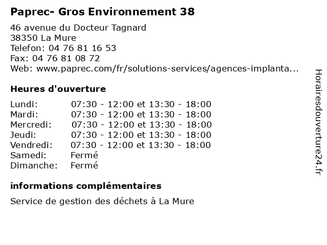 | Lundi | 07:30-12:00 et 13:30-18:00 |