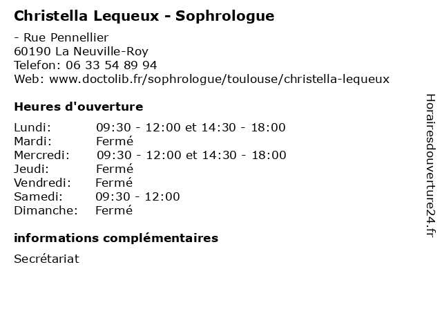 | Mercredi | 09:30-12:00 et 14:30-18:00 |