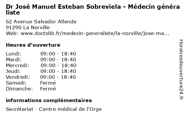 1 Vetter Yves Manuel Marie (Distance: 5,46 km) 4 6 Ruelle Des Cavaliers, 91790 Boissy Sous St Yon manuel, marie, restaurants, vetter, yves 2 Dr Manuel Wiese - Médecin généraliste (Distance: 7,81 km) 77 rue du Perray, 91160 Ballainvilliers consultation, docteur, dr, généraliste, manuel, med, médecin, traitement, wiese 3 Dr Quentin Manuel - Chirurgien-dentiste (Distance: 11,86 km) 4 place de la Liberté, 91610 Ballancourt chirurgien, dentaire, dentiste, dr, implantologie, manuel, parodontologie, quentin 4 Maître Marie-José Guedj - Avocate (Distance: 12,59 km) 503 Place des Champs Elysées, 91080 Evry-Courcouronnes avocate, avocats, civils, droits, guedj, josé, juridiques, marie, maître 5 Dr José Tahina - Psychiatre (Distance: 12,90 km) 6 Rue Père André Jarlan, 91000 Evry-Courcouronnes consultation, docteur, dr, josé, médecins, psychiatre, psychiatrie, rendez, santé, sur, tahina, vous 6 Pires Da Silva Manuel Luis (Distance: 13,91 km) 6 Place Gabriel Fontaine, 91420 Morangis da, luis, manuel, pires, restaurants, silva |