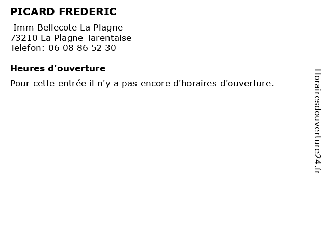 1 Picard Frederic Jacques (Distance: 1,92 km) Imm Bellecote La Plagne, 73210 Macot La Plagne frederic, jacques, picard, restaurants 2 Abondance Frederic (Distance: 13,32 km) Grand Naves, 73260 La Lechere abondance, frederic, restaurants 4 Picard Surgelés (Distance: 29,27 km) - Zone d'aménagement Grand Pré, 73200 Gilly-sur-Isère alimentation, légumes, picard, plats, poisson, surgelé, surgelés 6 |