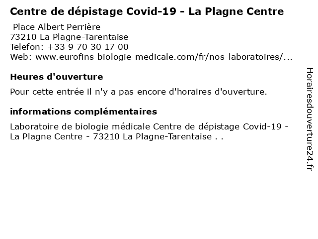 | Appeler Centre de dépistage Covid-19 - La Plagne Centre | |