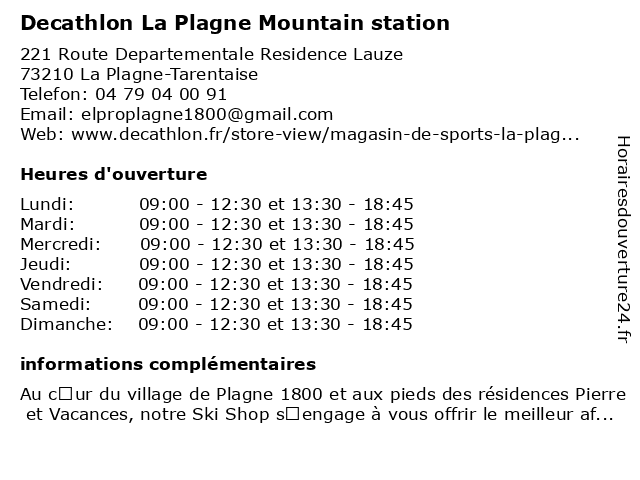 | Dimanche | 09:00-12:30 et 13:30-18:45 |