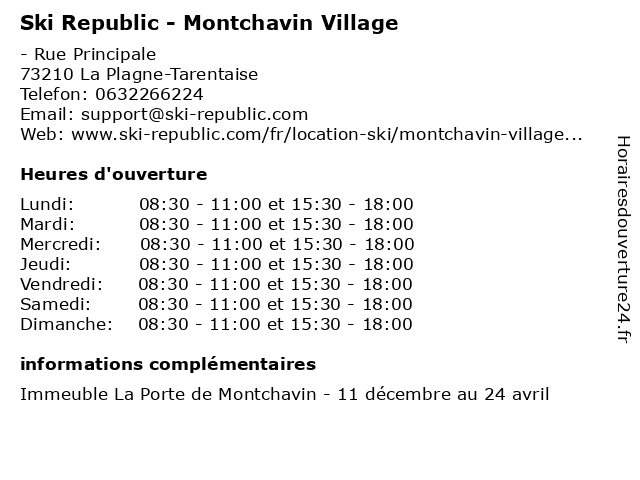 | Lundi | 08:30-11:00 et 15:30-18:00 |