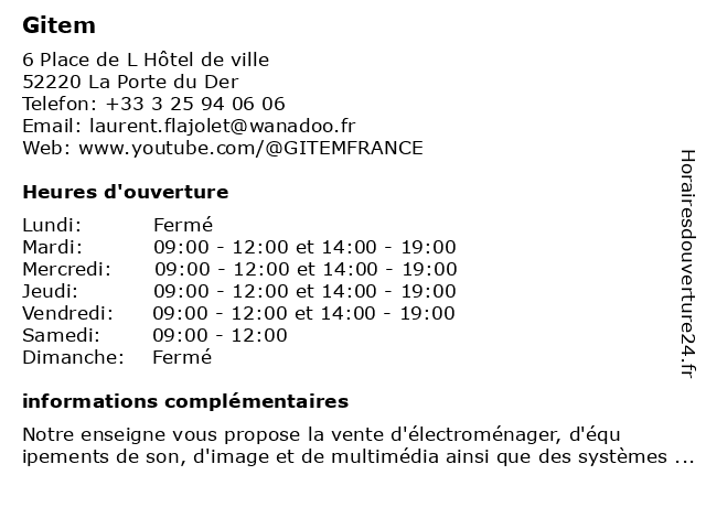 | Mardi | 09:00-12:00 et 14:00-19:00 |
