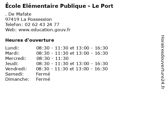| Mardi | 08:30-11:30 et 13:00-16:30 |