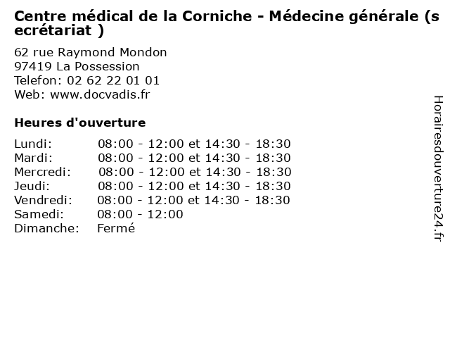 | Lundi | 08:00-12:00 et 14:30-18:30 |