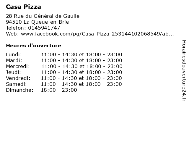 | Mardi | 11:00-14:30 et 18:00-23:00 |