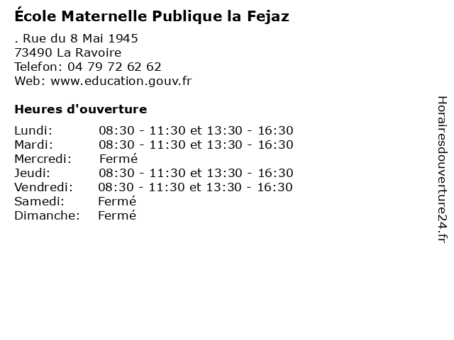 | Mardi | 08:30-11:30 et 13:30-16:30 |