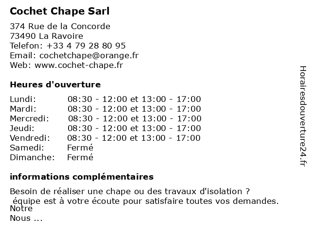 | Mardi | 08:30-12:00 et 13:00-17:00 |