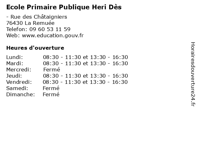 | Lundi | 08:30-11:30 et 13:30-16:30 |
