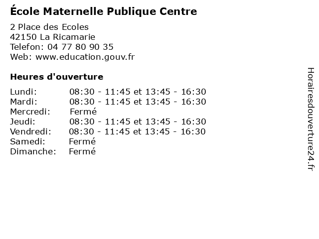 | Mardi | 08:30-11:45 et 13:45-16:30 |