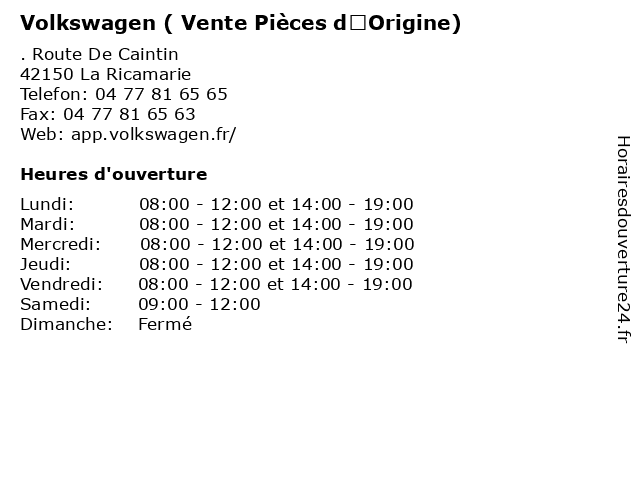1 Volkswagen ( Vente Pièces dOrigine) (Distance: 3,61 km) 6 Rue Etienne Mimard, 42000 Saint Etienne automobiles, concessionnaire, dorigine, garage, motos, pièces, vente, volkswagen 2 Volkswagen ( Vente Pièces dOrigine) (Distance: 7,75 km) . Chemin Du Gue, 42700 Firminy automobiles, concessionnaire, dorigine, garage, motos, pièces, vente, volkswagen 3 Volkswagen ( Activités Véhicules dOccasion) (Distance: 0,00 km) . Route De Caintin, 42150 La Ricamarie activités, automobiles, concessionnaire, doccasion, garage, motos, volkswagen, véhicules 4 Volkswagen ( Ventes Accessoires dOrigine) (Distance: 0,00 km) . Route De Caintin, 42150 La Ricamarie accessoires, automobiles, concessionnaire, dorigine, garage, motos, ventes, volkswagen 5 Volkswagen ( Ventes Accessoires dOrigine) (Distance: 3,61 km) 6 Rue Etienne Mimard, 42000 Saint Etienne accessoires, automobiles, concessionnaire, dorigine, garage, motos, ventes, volkswagen 6 Volkswagen ( Activités Véhicules dOccasion) (Distance: 5,62 km) 14 Rue De La Talaudiere, 42000 Saint Etienne activités, automobiles, concessionnaire, doccasion, garage, motos, volkswagen, véhicules |