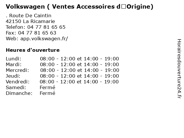 1 Volkswagen ( Ventes Accessoires dOrigine) (Distance: 3,61 km) 6 Rue Etienne Mimard, 42000 Saint Etienne accessoires, automobiles, concessionnaire, dorigine, garage, motos, ventes, volkswagen 2 Volkswagen ( Ventes Accessoires dOrigine) (Distance: 6,65 km) . Route De L'Etrat, 42270 Saint Priest En Jarez accessoires, automobiles, concessionnaire, dorigine, garage, motos, ventes, volkswagen 3 Volkswagen ( Ventes Accessoires dOrigine) (Distance: 7,75 km) . Chemin Du Gue, 42700 Firminy accessoires, automobiles, concessionnaire, dorigine, garage, motos, ventes, volkswagen 4 Volkswagen ( Activités Véhicules dOccasion) (Distance: 0,00 km) . Route De Caintin, 42150 La Ricamarie activités, automobiles, concessionnaire, doccasion, garage, motos, volkswagen, véhicules 5 Volkswagen ( Vente Pièces dOrigine) (Distance: 0,00 km) . Route De Caintin, 42150 La Ricamarie automobiles, concessionnaire, dorigine, garage, motos, pièces, vente, volkswagen 6 Volkswagen ( Vente Pièces dOrigine) (Distance: 3,61 km) 6 Rue Etienne Mimard, 42000 Saint Etienne automobiles, concessionnaire, dorigine, garage, motos, pièces, vente, volkswagen |