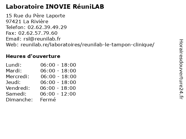 1 Laboratoire INOVIE RéuniLAB (Distance: 3,81 km) 55 rue Sarda Garriga, 97450 Saint-Louis biologie, de, inovie, laboratoire, médicale, prélèvements, réunilab 2 Laboratoire INOVIE RéuniLAB (Distance: 4,07 km) 14 Rue de l'Eglise, 97414 Entre-Deux analyse, inovie, laboratoire, prelevement, réunilab, sang 3 Laboratoire INOVIE RéuniLAB (Distance: 4,37 km) 15 rue de Chine, 97450 Saint-Louis biologie, de, inovie, laboratoire, médicale, prélèvements, réunilab 4 Laboratoire INOVIE RéuniLAB (Distance: 10,75 km) 7 rue Henri Fort, 97425 Les Avirons biologie, de, inovie, laboratoire, médicale, prélèvements, réunilab 5 Laboratoire INOVIE RéuniLAB (Distance: 18,69 km) 134 rue du Général Lambert, 97436 Saint-Leu analyse, inovie, laboratoire, prelevement, réunilab, sang 6 Laboratoire d'analyses médicales - Trois Mares - Cerballiance (Distance: 7,01 km) 2a Rue charles baudelaire, 97430 Le Tampon cerballiance, d'analyses, dépistages, laboratoire, mares, médicales, trois |