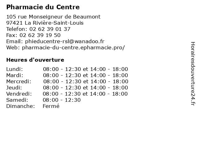 1 Pharmacie du Centre (Distance: 16,62 km) 295 Rue Mahé de la Bourdonnais, 97429 Petite Île centre, conseils, du, médicaments, orthopédie, pharmacie 2 Pharmacie du Rosaire (Distance: 0,07 km) 13 rue Pente Nicole, 97421 Saint-Louis du, homéopathie, médicaments, orthopédie, parapharmacie, pharmacie, rosaire 3 Pharmacie du Tamarinier (Distance: 7,55 km) 121 avenue Raymond Barre, 97427 Etang-Salé du, homéopathie, médicaments, orthopédie, parapharmacie, pharmacie, tamarinier 4 Pharmacie Sable Noir (Distance: 10,53 km) 38 Avenue Octave Benard, 97427 L'Etang-Salé conseils, médicaments, noir, orthopédie, pharmacie, sable 5 Pharmacie de la Poste (Distance: 32,93 km) 42 rue du Commerce, 97460 Saint-Paul de, homéopathie, la, médicaments, orthopédie, parapharmacie, pharmacie, poste 6 Pharmacie de la Gare (Distance: 40,64 km) 251 rue de la Gare, 97440 Saint-André de, gare, homéopathie, la, médicaments, orthopédie, parapharmacie, pharmacie |