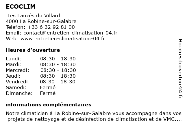 | Lundi | 08:30-18:30 |