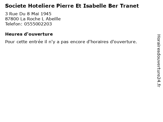 | Appeler Societe Hoteliere Pierre Et Isabelle Ber Tranet | |