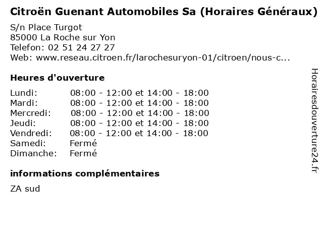 Termes de recherche pour Citroën Guenant Automobiles Sa (Horaires Généraux):automobiles, horaires, sa, services, véhicules, citroen, généraux, guenant |