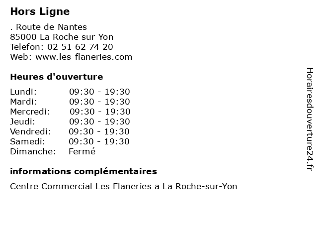 1 Fasthôtel (Réception, hors août) (Distance: 1,12 km) - Route de Nantes, 85000 La Roche-sur-Yon août, fasthôtel, hebergement, hors, hotel, réception, tourisme 2 Ligne Roset (Distance: 1,69 km) 2 RUE BENJAMIN FRANKLIN, 85000 LA ROCHE SUR YON canapés, furniture, home decoration, ligne, roset, table 3 City Zèbres-Horaires hors vacances scolaires (Distance: 1,76 km) N/A Rue Benjamin Franklin, 85000 La Roche-sur-Yon anniversaire, city, enfant, horaires, hors, jeu, scolaires, vacances, zèbres 4 Royal Kids (Horaires hors vacances scolaires) (Distance: 5,67 km) 66 rue de Savary de l'Epineraye, 85000 La Roche sur Yon enfants, horaires, hors, kids, loisirs, parc, royal, scolaires, vacances 5 Domaine de Brandois (Restaurant la Licorne, hors été) (Distance: 19,39 km) - La forêt, 85150 La Mothe-Achard brandois, de, domaine, hebergement, hors, hotel, la, licorne, restaurant, été 6 Alain Afflelou (Distance: 0,00 km) . Route de Nantes, 85000 La Roche sur Yon afflelou, alain, cafe, chaussures, enfants, homme, lingerie, mode femme, restaurant, service, shopping |