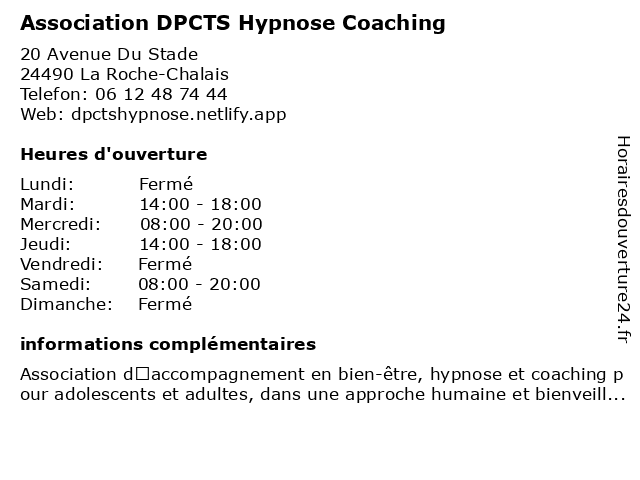 Association DPCTS Hypnose Coaching à La Roche-Chalais