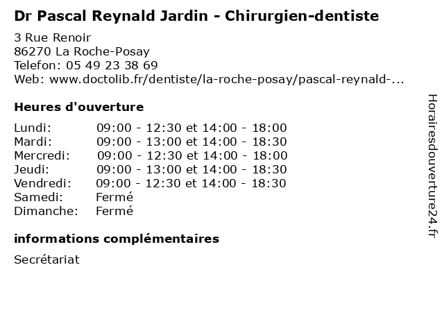 | Lundi | 09:00-12:30 et 14:00-18:00 |