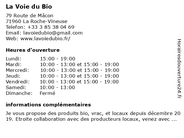 | Mardi | 10:00-13:00 et 15:00-19:00 |