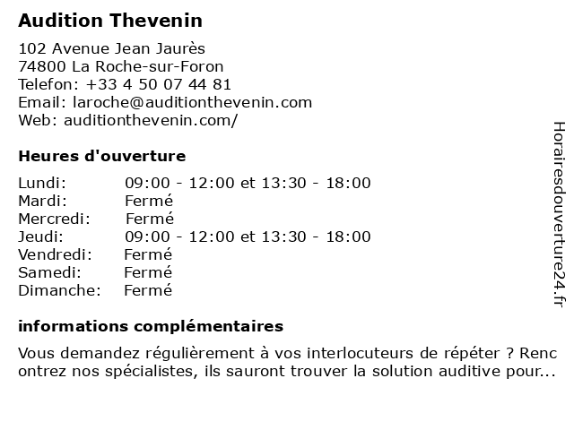 2 Audioprothésiste Savoie Audition - La Roche sur Foron (Distance: 0,04 km) 97 Avenue Charles de Gaulle, 74800 La Roche-sur-Foron audioprothésiste, audition, foron, la, roche, savoie, sur 3 ECOUTER VOIR Audition La Roche sur Foron (Distance: 0,21 km) 9 Faubourg Saint-Bernard, 74800 La Roche-sur-Foron audition, ecouter, foron, la, roche, sur, voir 4 Audioprothésiste Savoie Audition - Bonneville (Distance: 7,53 km) 46 Rue Décret, 74130 Bonneville audioprothésiste, audition, bonneville, savoie 5 Thevenin & Ducrot - Avia (libre service 24/24) (Distance: 11,10 km) 419 Route de la Vallée du Giffre, 74250 Fillinges 24/24, accessoires, avia, ducrot, libre, motos, service, services, stations, thevenin, thévenin, voitures 6 Thevenin & Ducrot - Avia (Distance: 11,10 km) 419 Route de la Vallée du Giffre, 74250 Fillinges accessoires, avia, ducrot, motos, services, stations, thevenin, thévenin, voitures |