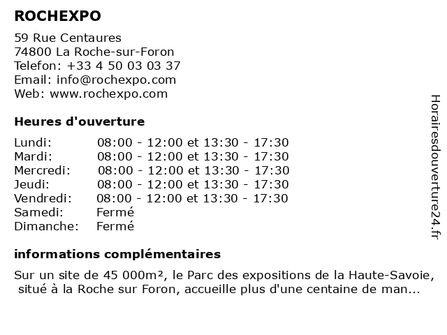 Sur un site de 45 000m², le Parc des expositions de la Haute-Savoie, situé à la Roche sur Foron, accueille plus d'une centaine de manifestations chaque année ! ROCHEXPO y organise des manifesta...