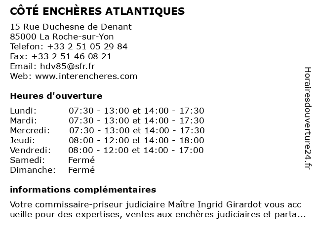 | Lundi | 07:30-13:00 et 14:00-17:30 |