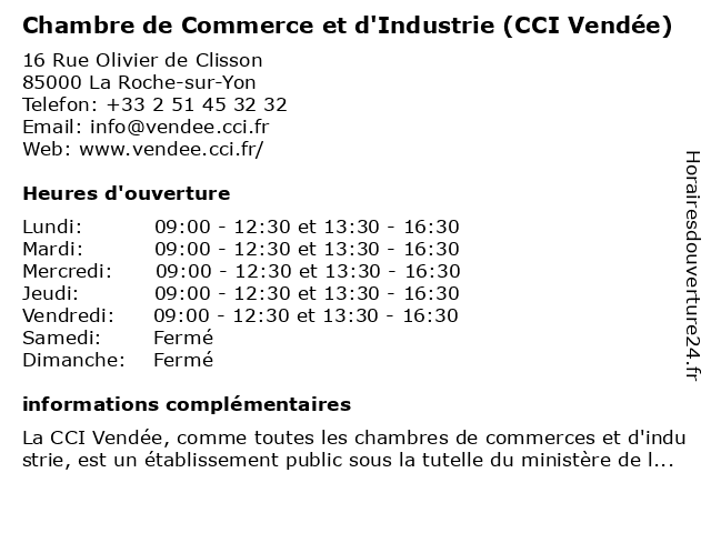 Termes de recherche pour Chambre de Commerce et d'Industrie (CCI Vendée):et, de, commerce, chambre, vendée, d'industrie, cci |