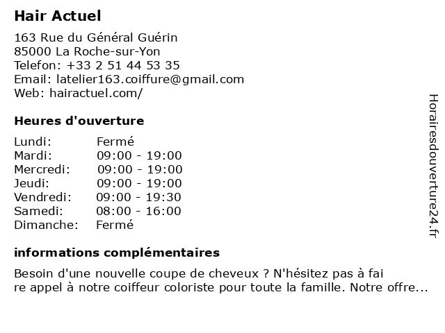 4 Belle Hair Coiffure (Distance: 12,92 km) 1bis Rue de Bel Air, 85480 Fougeré balayage, belle, coiffeur, coiffure, coloration, coupe, hair, mèches 5 Abécéd'Hair (Distance: 14,57 km) 14 Rue des Ecus, 85170 Le Poiré-Sur-Vie abécéd'hair, beauté, coiffeur, coiffure, salon 6 Salon Hair du Temps (Distance: 17,99 km) 7 avenue de Verdun, 85190 Aizenay cheveux, coiffure, coloration, coupe, du, hair, salon, soin, temps |