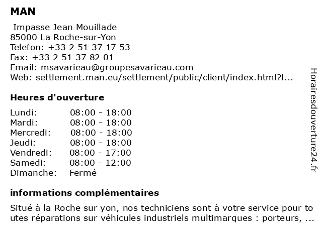 1 MAN (Distance: 0,12 km) 2 Impasse Jean Moillade, 85000 La Roche-sur-Yon after, automobiles, concessionnaire, concessionnaire de camions, man, pièces, portal, réparation, sales, services, ventes 2 La Halle (Distance: 3,73 km) n/a Rue Duchesne de Denant, 85000 La Roche-sur-Yon bags, child, clothing, halle, la, lingerie, man, shoes, woman 3 La Halle (Distance: 30,92 km) 45 avenue Georges Clemenceau, 85110 Chantonnay bags, child, clothing, halle, la, lingerie, man, shoes, woman 4 La Halle (Distance: 31,11 km) n/a Route de Talmont, 85180 Château-d'Olonne bags, child, clothing, halle, la, lingerie, man, shoes, woman 5 MAN (Distance: 32,63 km) 2 Quai de la Cabaude, 85100 Les Sables d'olonne after, automobiles, concessionnaire, concessionnaire de camions, man, pièces, portal, réparation, sales, services, ventes 6 La Halle (Distance: 34,22 km) n/a Chemin des Roches, 85400 Luçon bags, child, clothing, halle, la, lingerie, man, shoes, woman |